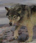 The Beringian wolf was a powerful Ice Age predator that lived in the cold northern regions of Alaska, Yukon, and parts of Siberia. It was a specialized form of the gray wolf, but noticeably more robust, with a broader skull, stronger jaws, and thick limbs built for life in harsh climates. Its dense fur and sturdy frame helped it navigate snow-covered landscapes where temperatures could drop far below freezing.