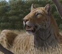 The saber tooth known as Smilodon gracilis was the smallest and earliest member of the famous saber-toothed cats. Despite its size, it was still a powerful predator with long, laterally flattened upper canines that gave the group its iconic name. Its body was built for strength rather than speed, with muscular forelimbs and a compact frame that allowed it to grapple prey with precision. Forest edges, open woodlands, and mixed environments provided ideal hunting grounds for this agile cat.Its daily life centered on ambush hunting. Smilodon gracilis relied on stealth, creeping close to unsuspecting prey before launching a short, explosive attack. Its strong forelimbs helped pin animals to the ground while its specialized canines delivered precise bites to vulnerable areas. Rather than chasing prey over long distances, it used cover and patience, traits that made it an efficient predator of ancient deer, small horses, and early camelids.Social behavior in Smilodon gracilis is not fully known, but fossil evidence suggests that saber-toothed cats may have lived in small groups or loose associations. If they did form social units, cooperation would have been valuable for protecting kills, raising young, and defending territories from larger predators. Juveniles likely learned hunting techniques by watching adults, gradually improving their stalking and grappling skills as they matured.Interactions with other animals were shaped by competition and caution. Larger carnivores such as early dire wolves, giant short-faced bears, and other saber-tooth species could threaten both kills and territories. Smilodon gracilis needed to balance boldness with awareness, defending its food when possible but retreating when outmatched. It shared its environment with numerous herbivores, and while it did not mix socially with them, their movements influenced where and when the cat chose to hunt.As a mid-sized predator, Smilodon gracilis played an important role in the ecosystems of early North America. By hunting smaller and medium-sized herbivores, it helped regulate prey populations and maintain ecological balance. Its presence also shaped the behavior of other predators, contributing to a dynamic and competitive landscape. Through its hunting strategies and interactions, this early saber-toothed cat left a lasting impact on the environments it once dominated.